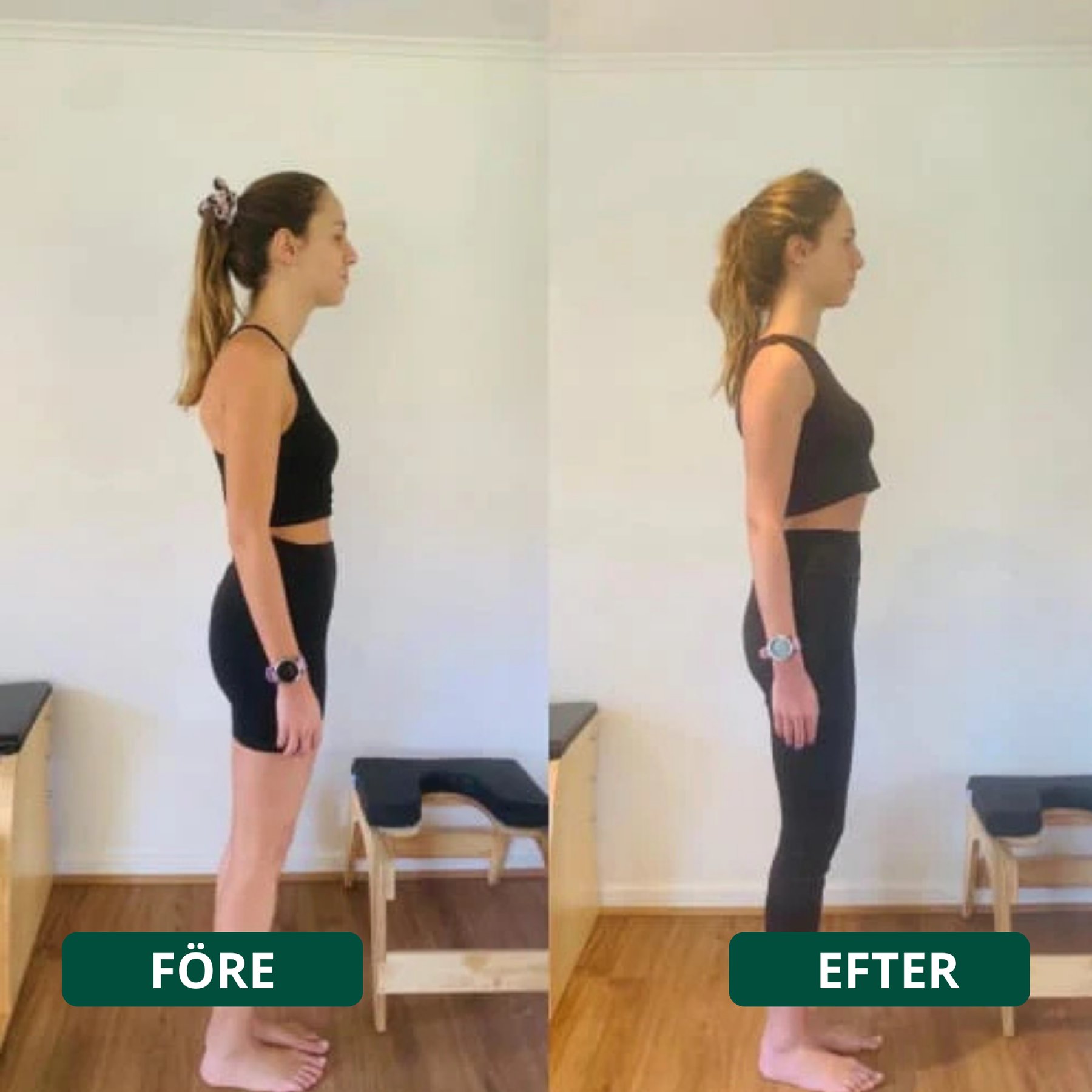 Hemligheten? Västen placerar din ryggrad i ett naturligt läge, vilket avlastar musklerna och påminner kroppen om hur bra en rak hållning faktiskt känns. Med de justerbara banden bestämmer du själv hur mycket stöd du vill ha – lätt eller kraftfullt.