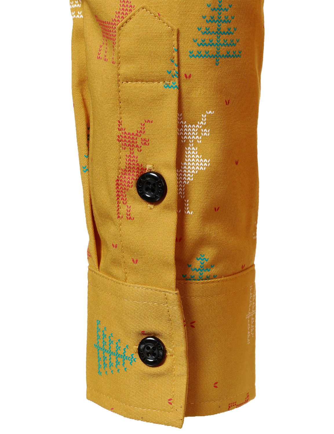 Herre Juletræ Elg Print Andningsbar Gul Långärmad Skjorta